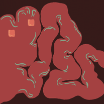 A series of nine animated panels depicting the digestive process, from ingestion to excretion. Each panel illustrates a stage in the journey of food through the body, highlighting the sequential movement and transformation of nutrients.